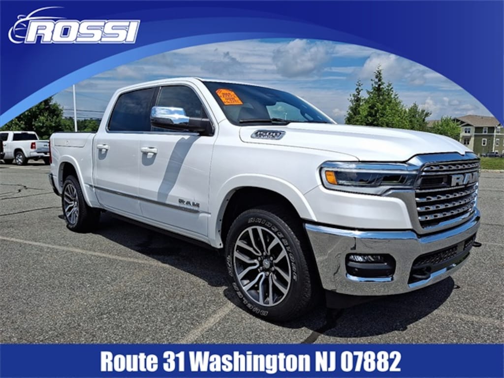 Certified. Ivory White Tri-Coat Pearlcoat 2025 Ram 1500 Limited 4WD 8-Speed Automatic 3.0L I6 Tow Package, Heated Seats, Leather Seats.