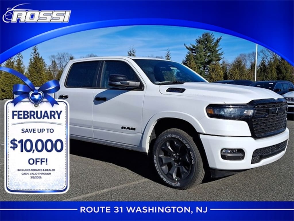 Rossi Chrysler Dodge Jeep Ram in Washington, NJ offers one of the areas strongest selections of 2025 Ram 1500 deals, including competitive lease deals and low-financing options that beat or match larger stores. Truck shoppers from Flemington, Hackettstown, Clinton, Phillipsburg, and Easton, PA rely on our low-pressure process and wide Ram inventory, giving you the trims, tow packages, and appearance options buyers compare most. Whether you're upgrading from an older Ram or cross-shopping F-150, Silverado, or Sierra, our team helps you match the right configuration to your towing needs and daily driving.