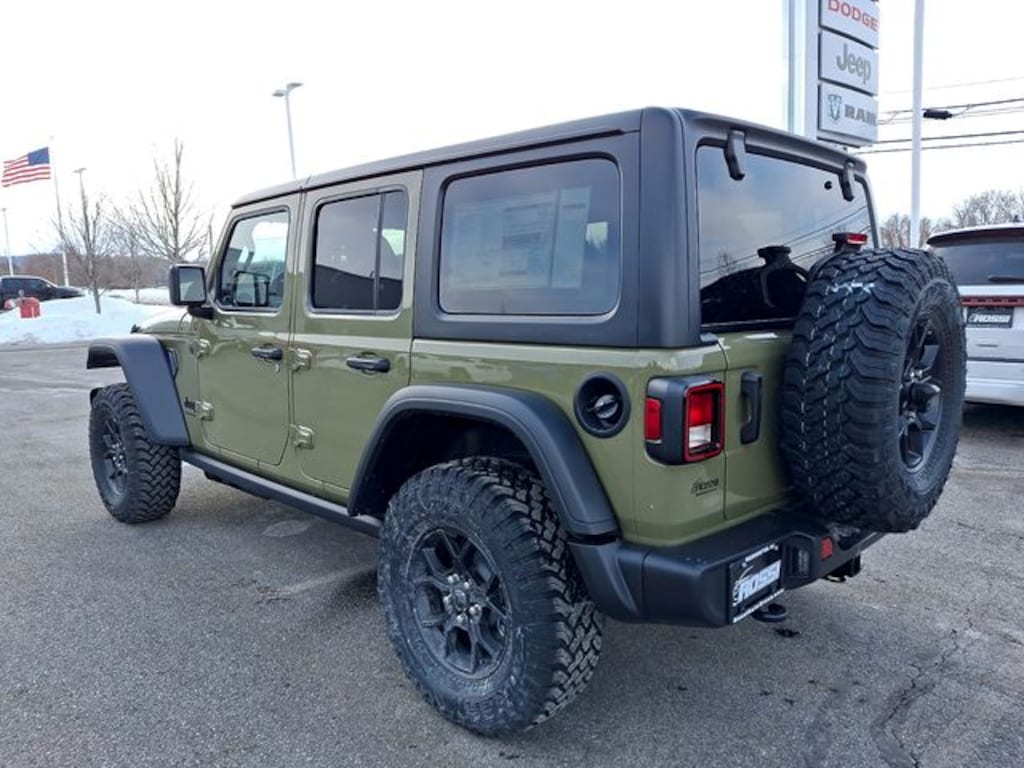 Drivers often ask what makes the Willys different. The Willys package typically adds upgraded off-road tires, heavy-duty components, and trail-ready styling details while maintaining everyday drivability. With 4WD capability, removable top options, and durable interior materials, this Wrangler is built to handle winter roads in Washington, NJ as confidently as weekend trails. The four-door layout also provides practical rear-seat space and cargo flexibility for daily use.
