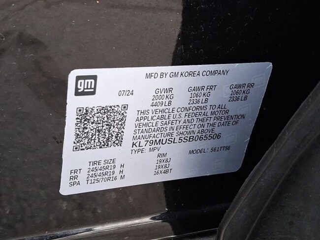 - VIN : KL79MUSL5SB065506