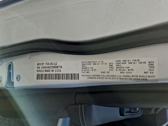 - VIN : 1C4RJHAG2S8806716
