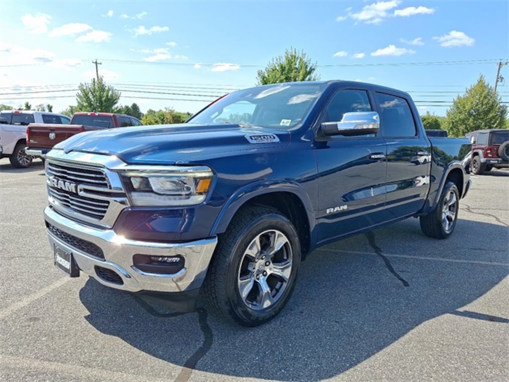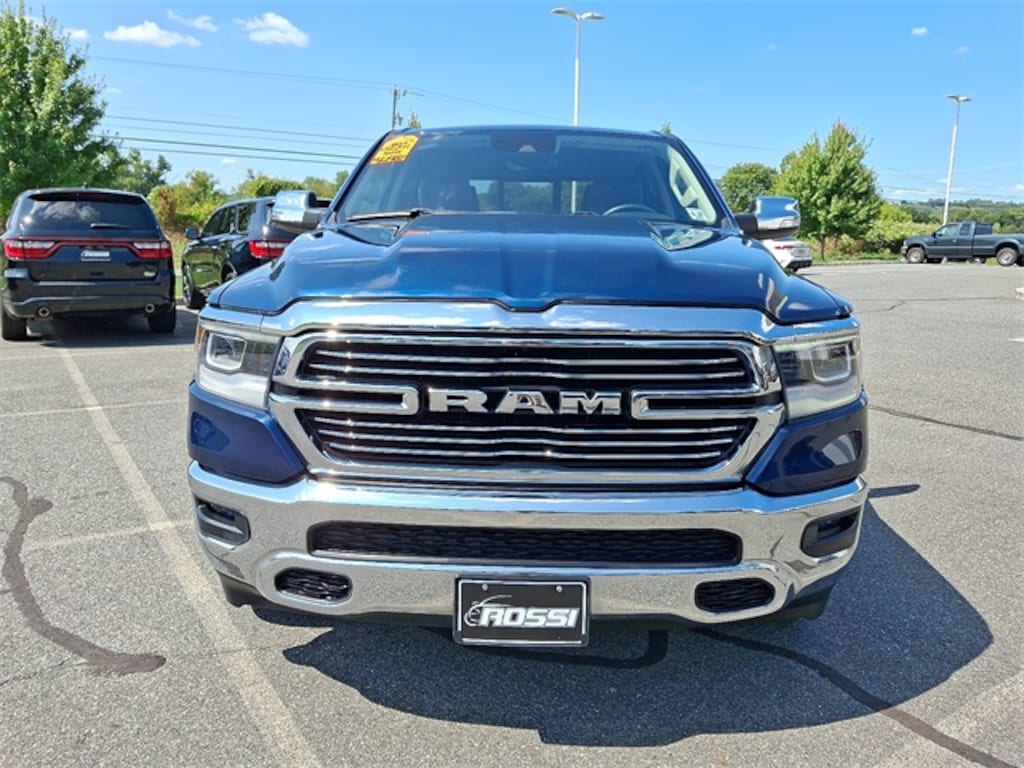 Certified. Patriot Blue Pearlcoat 2022 Ram 1500 Laramie 4WD 8-Speed Automatic HEMI 5.7L V8 Multi Displacement VVT Quick Order Package 25H Laramie.