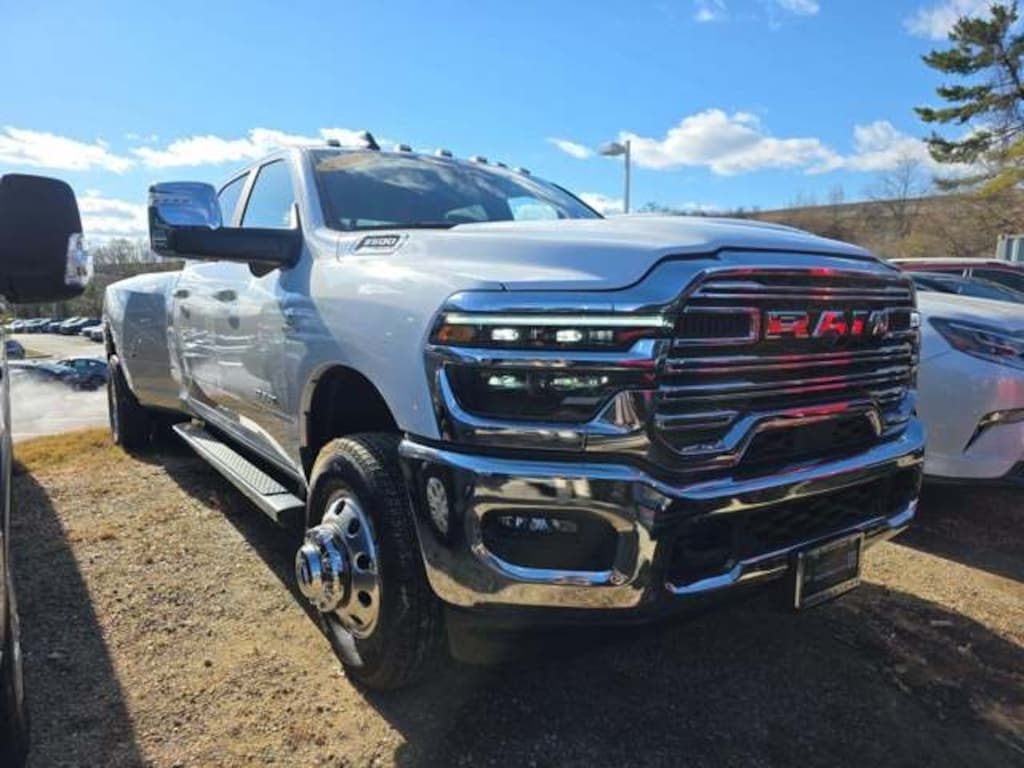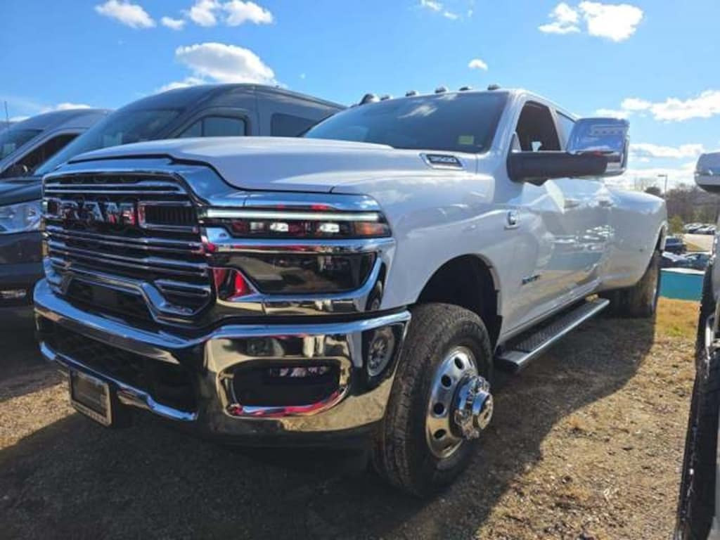 Certified. Bright White Clearcoat 2025 Ram 3500 Laramie 4WD 8-Speed Automatic 6.7L I6 Tow Package, Heated Seats, Leather Seats, GPS Navigation, Navigation System.
